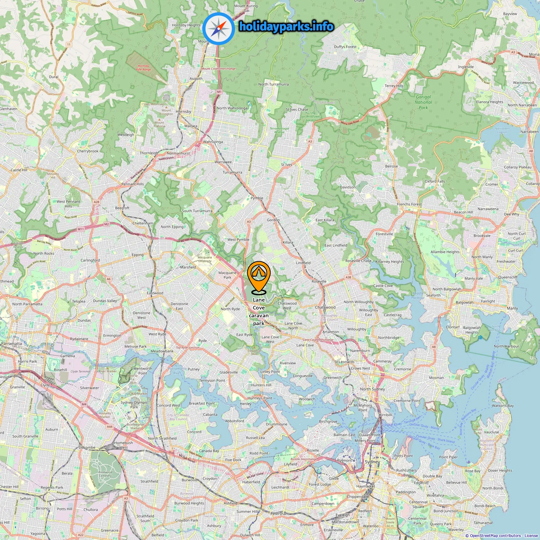 Location of Lane Cove caravan park