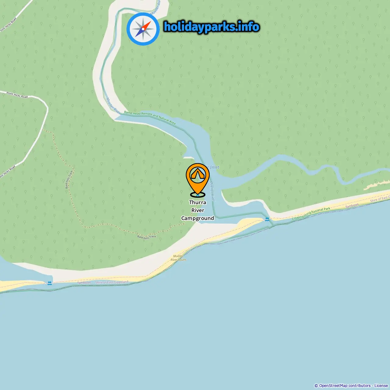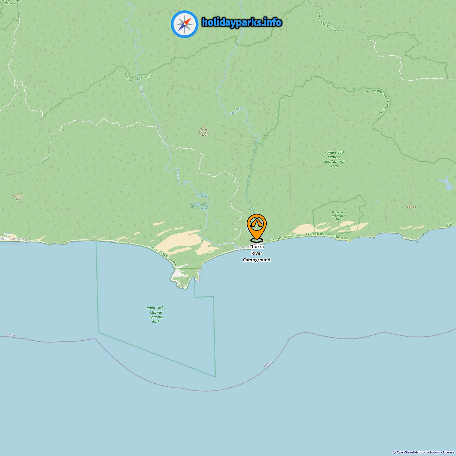 Location of Thurra River Campground