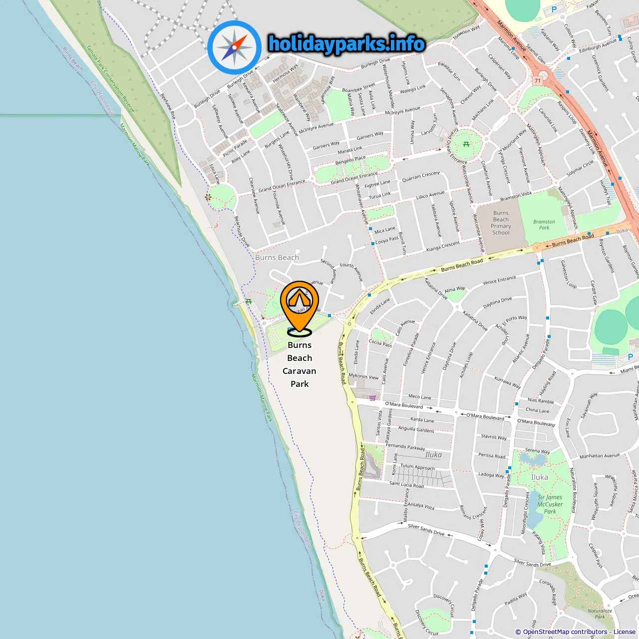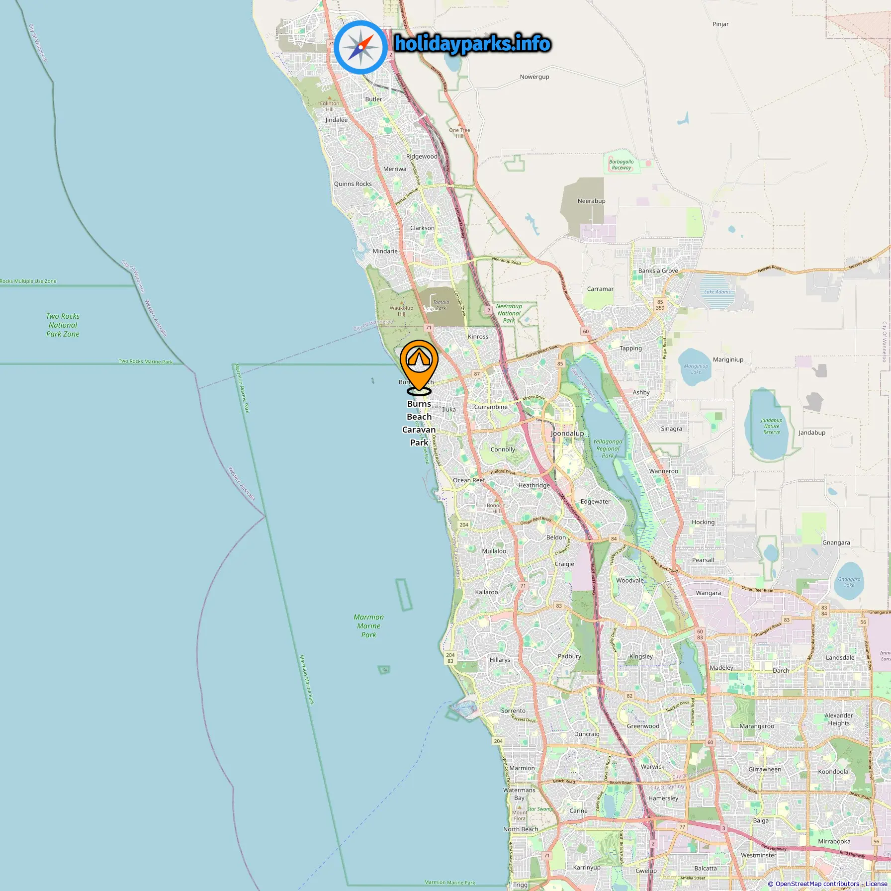 Location of Burns Beach Caravan Park