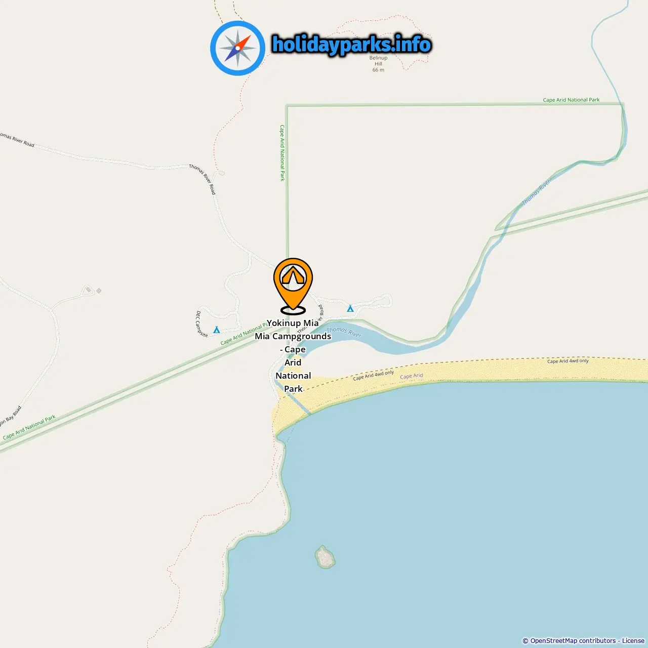 Location of Yokinup Mia Mia Campgrounds - Cape Arid National Park