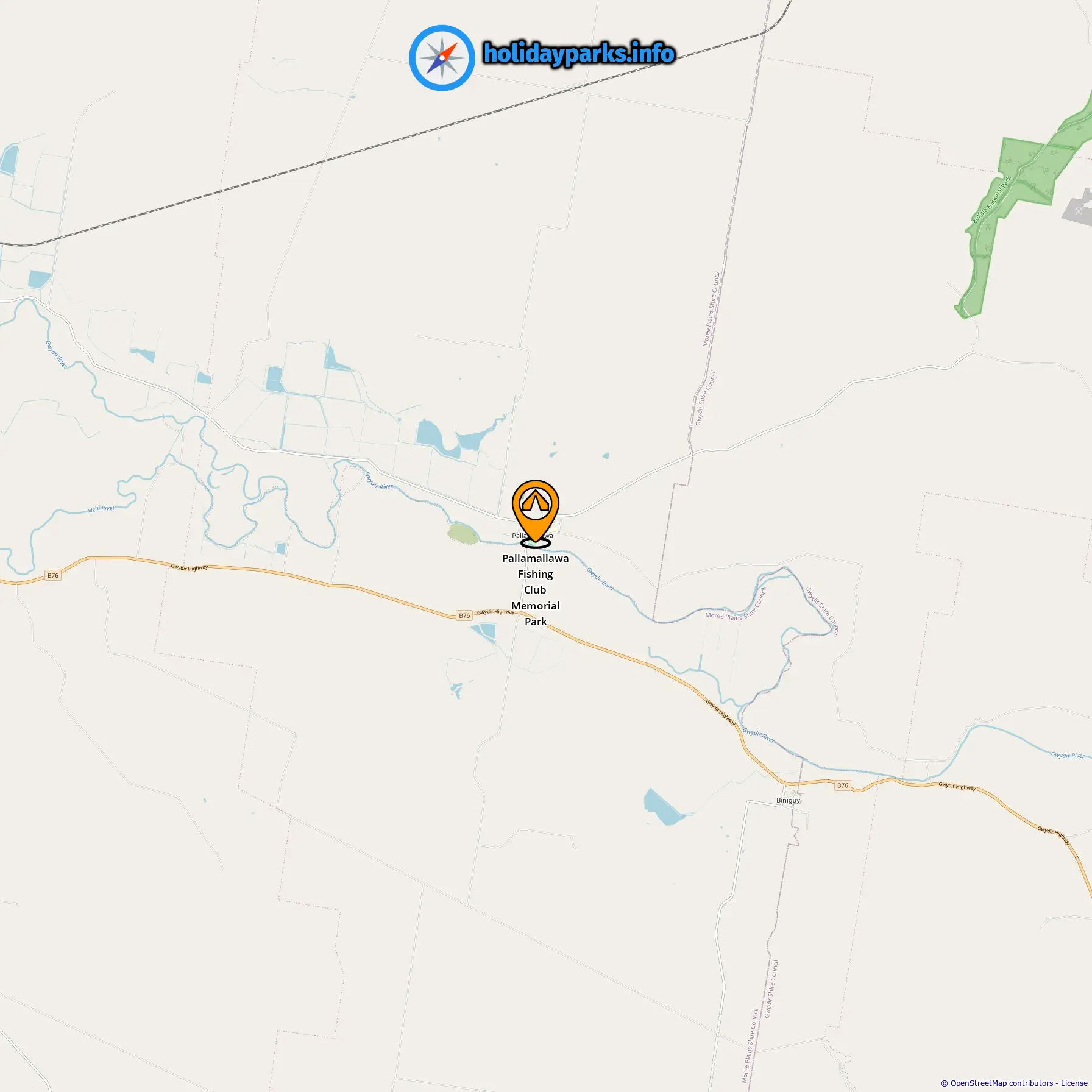 Location of Pallamallawa Fishing Club Memorial Park