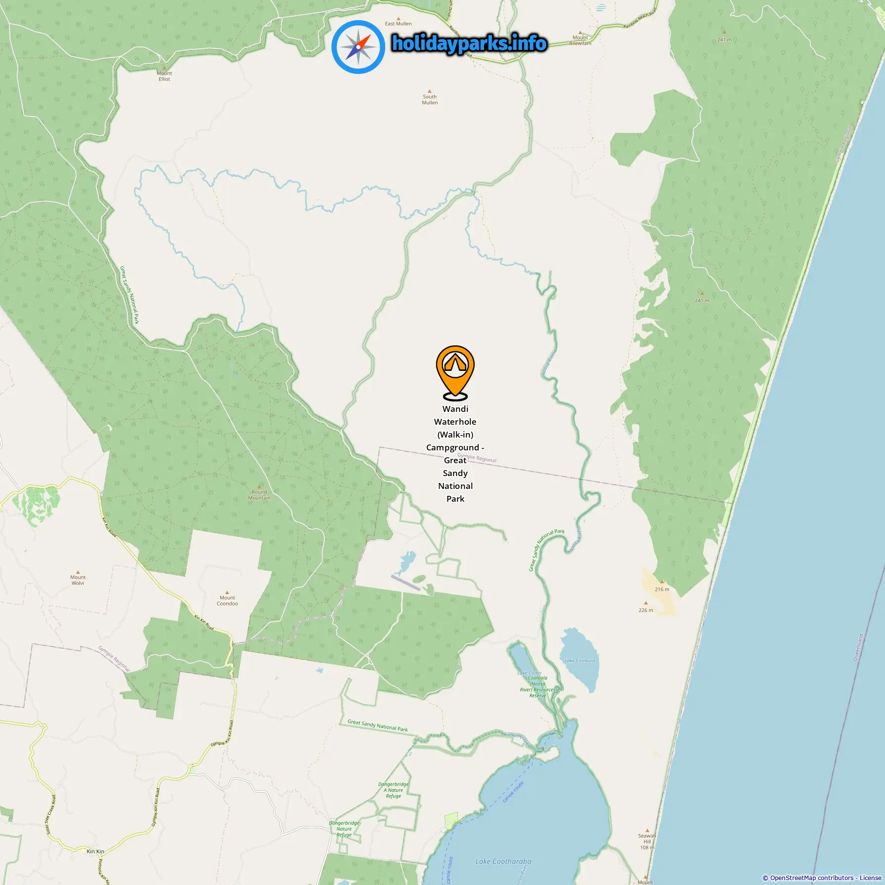 Location of Wandi Waterhole (Walk-in) Campground - Great Sandy National Park