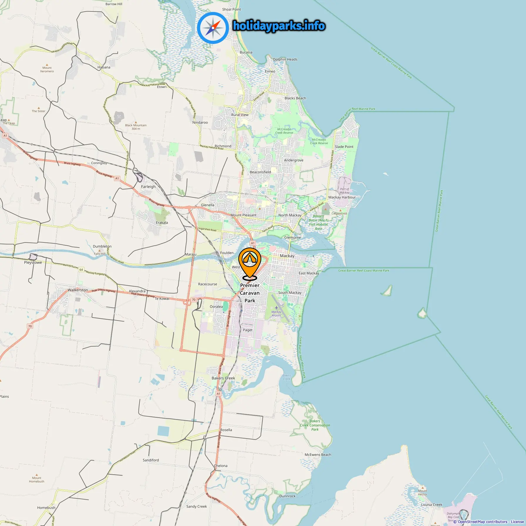 Location of Premier Caravan Park