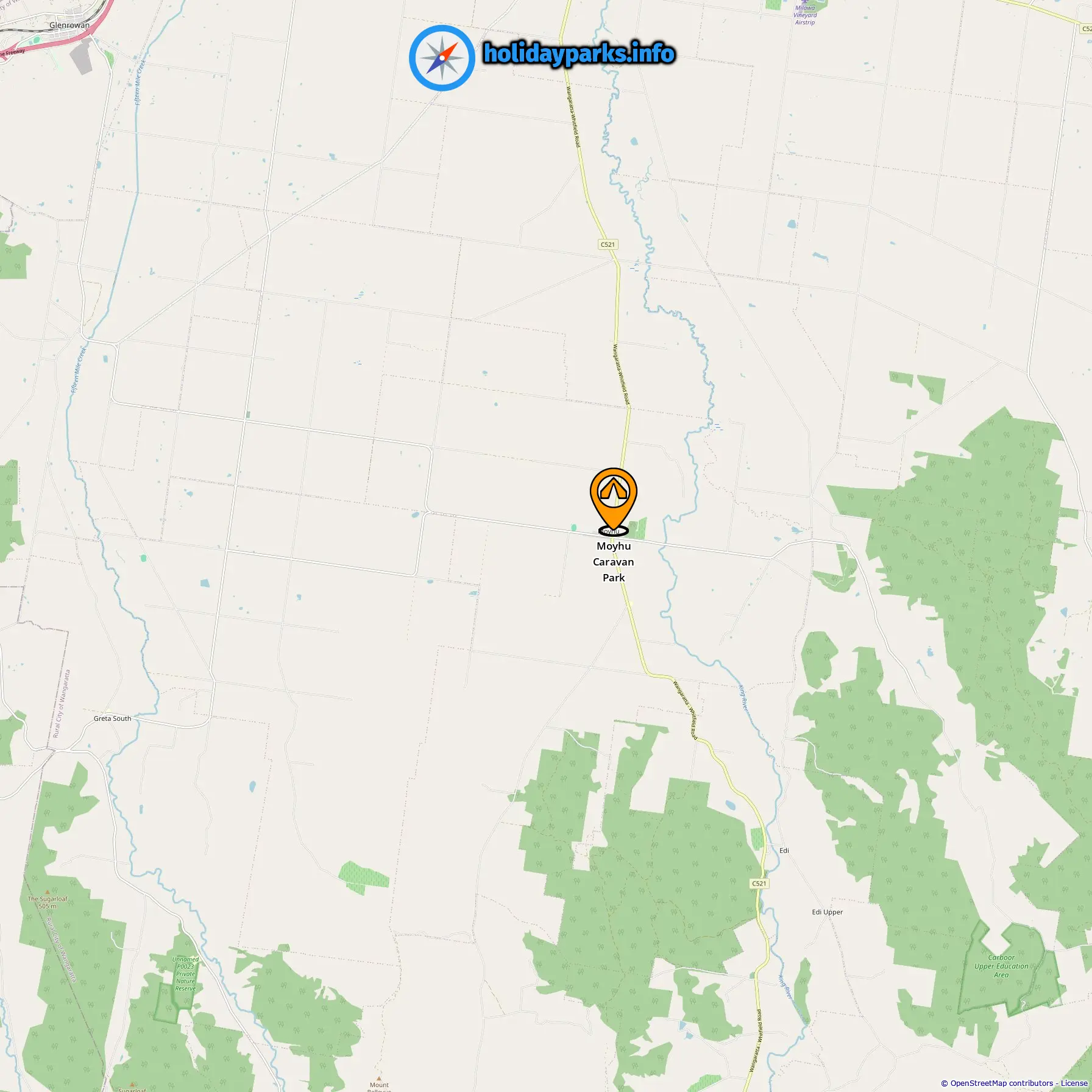 Location of Moyhu Caravan Park
