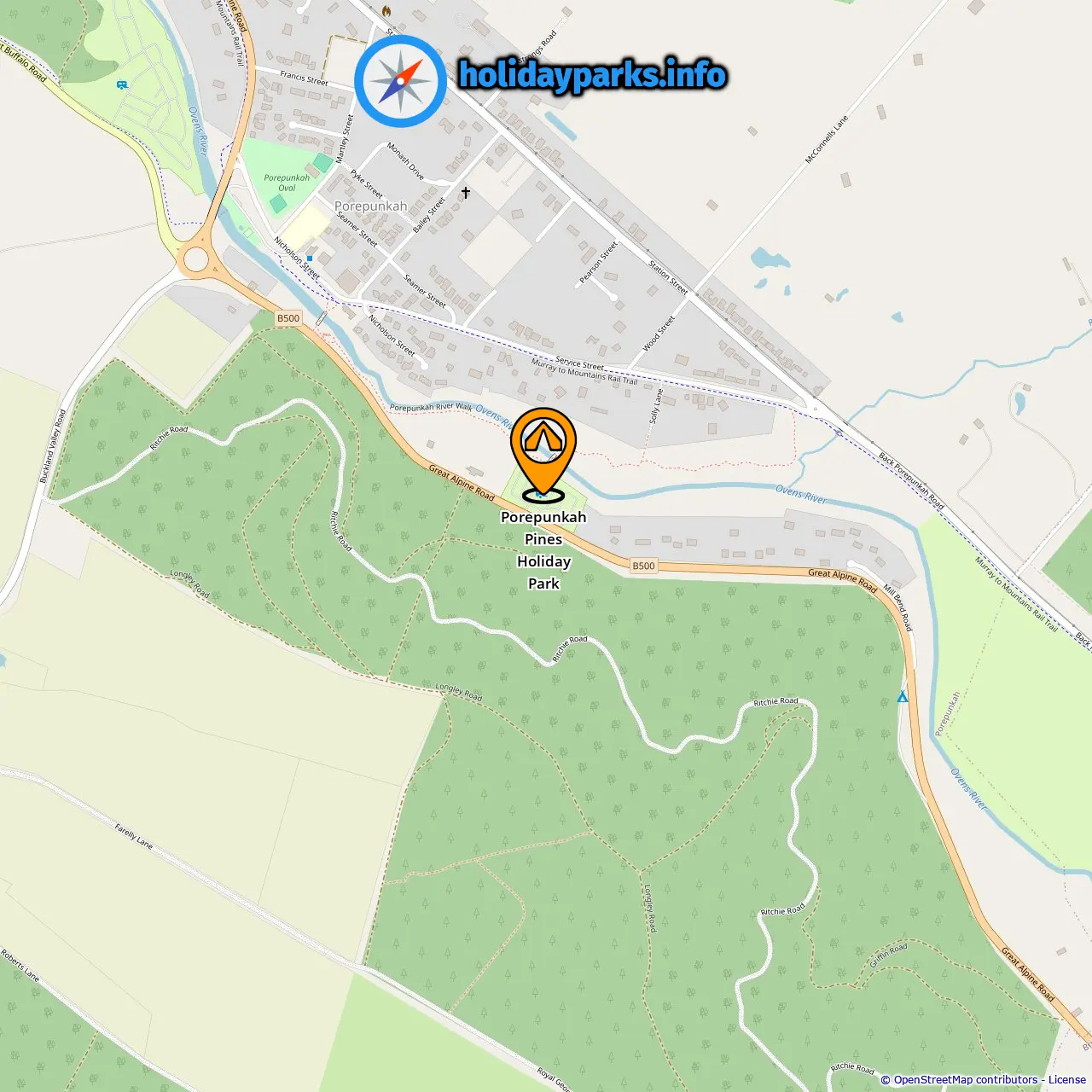 Location of Porepunkah Pines Holiday Park