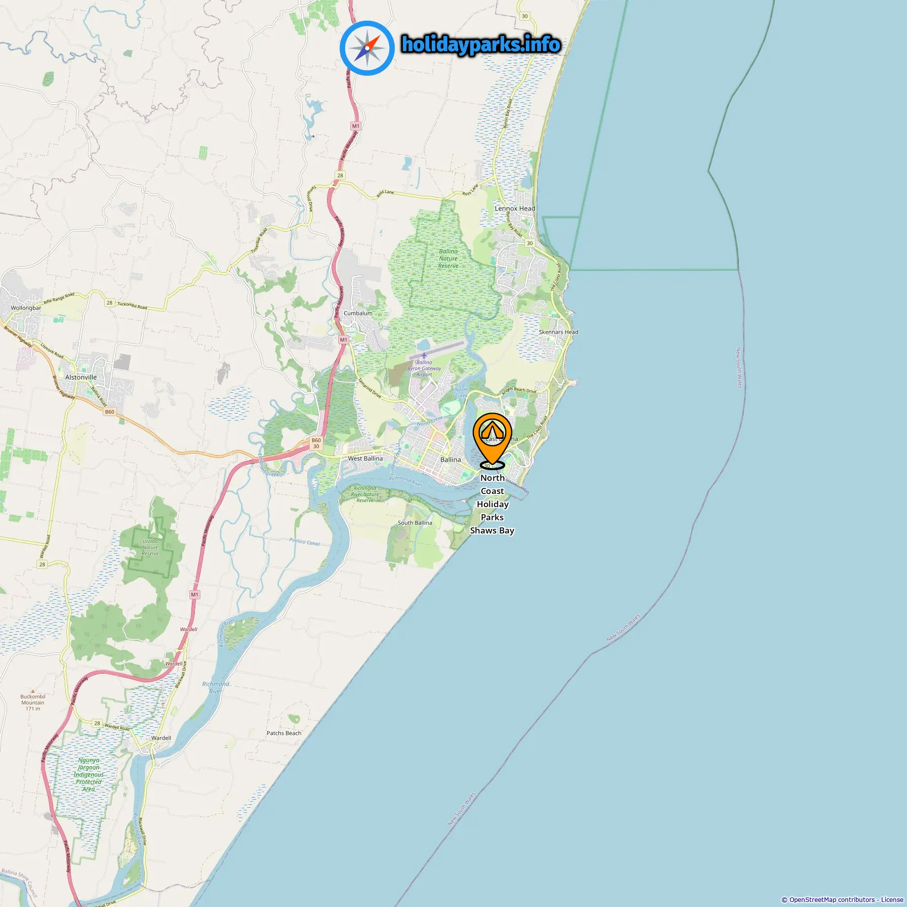 Ubicación de North Coast Holiday Parks Shaws Bay