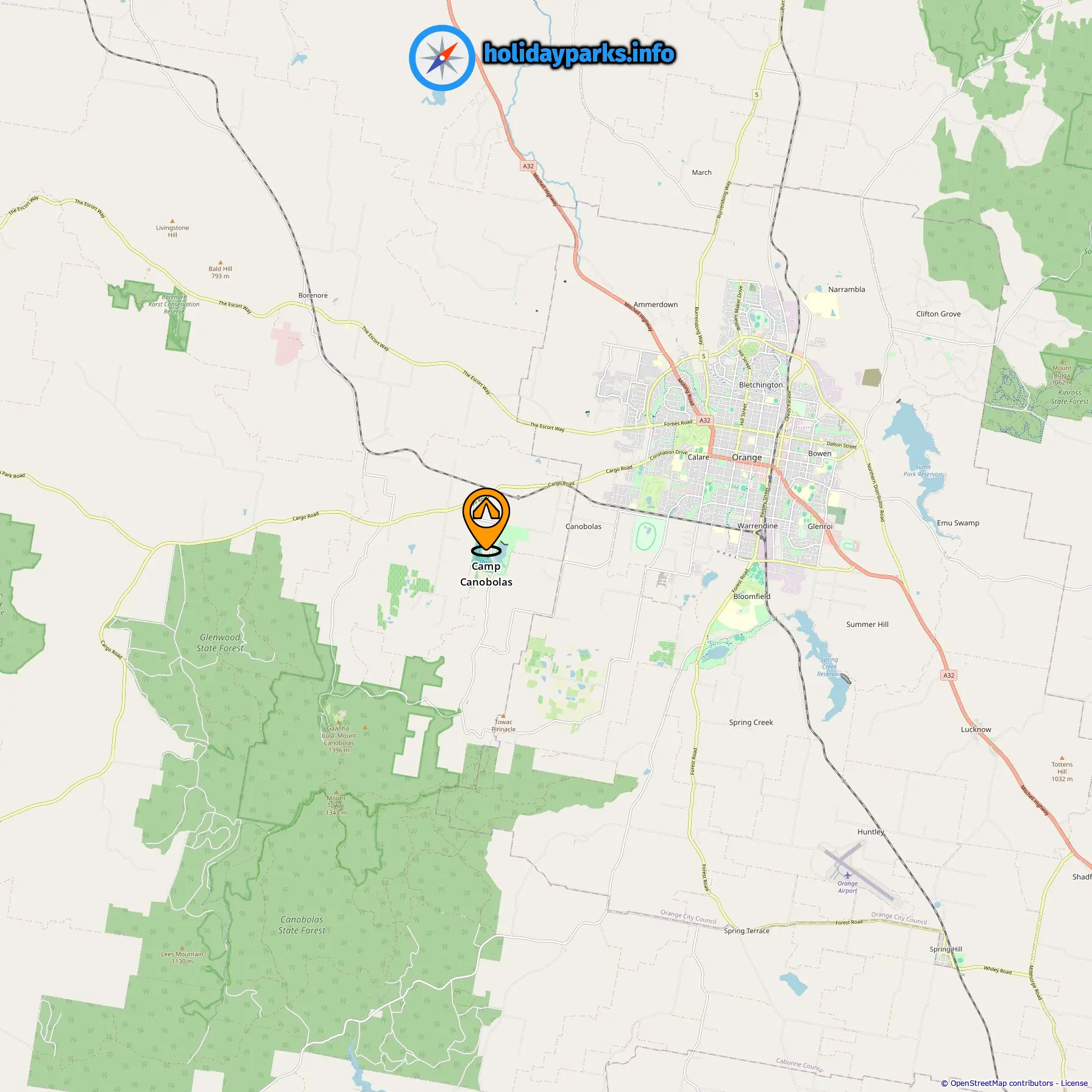 Locatie van Camp Canobolas