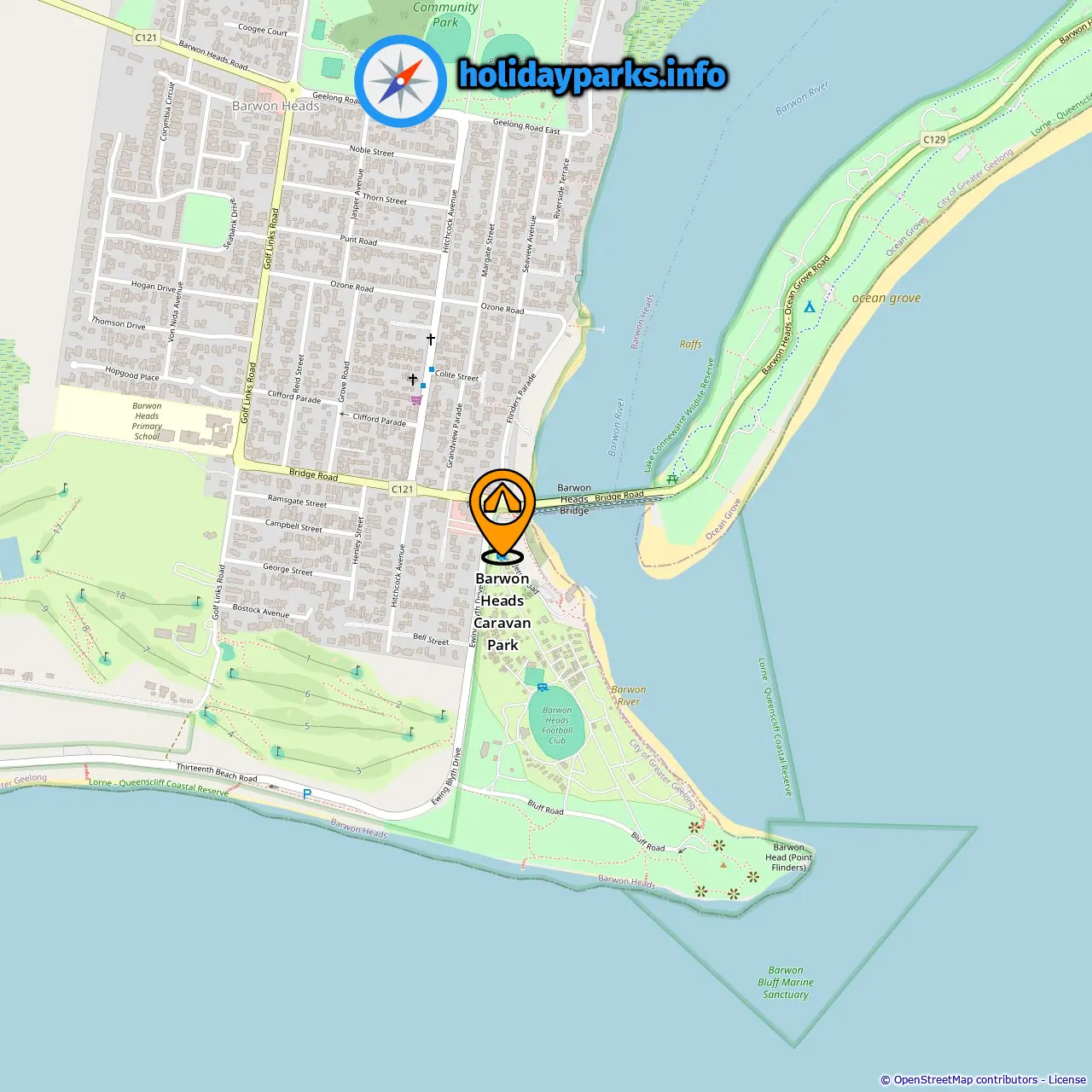 Afstand van de camping tot Barwon Heads: 0.5 mi