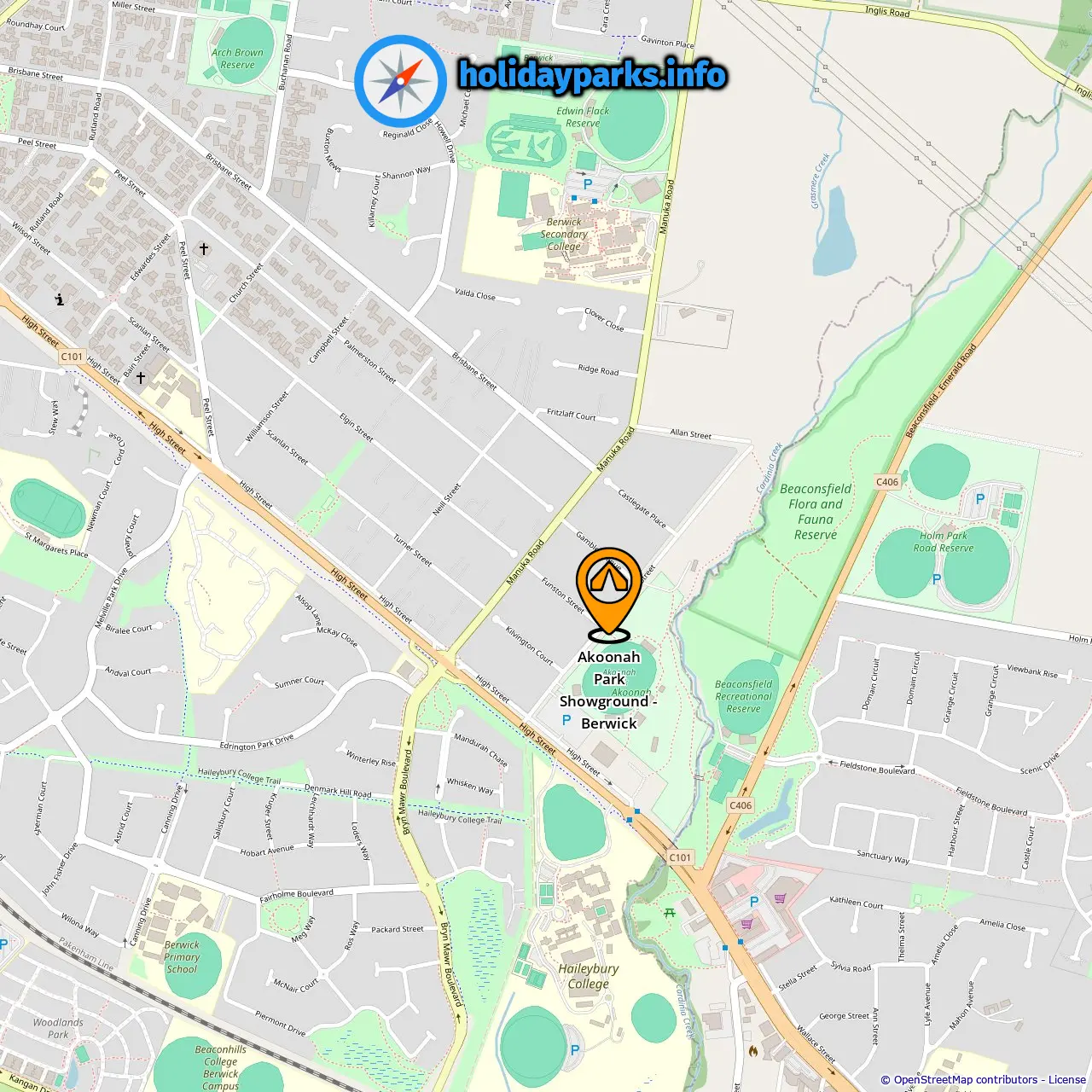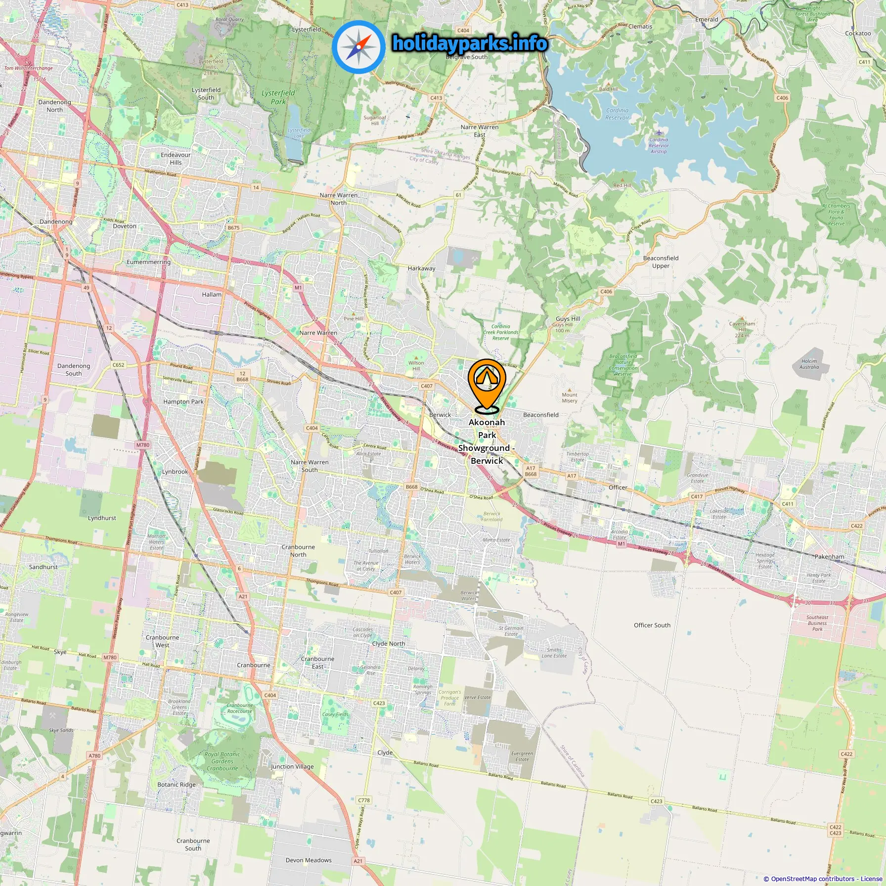 Locatie van Akoonah Park Showground - Berwick