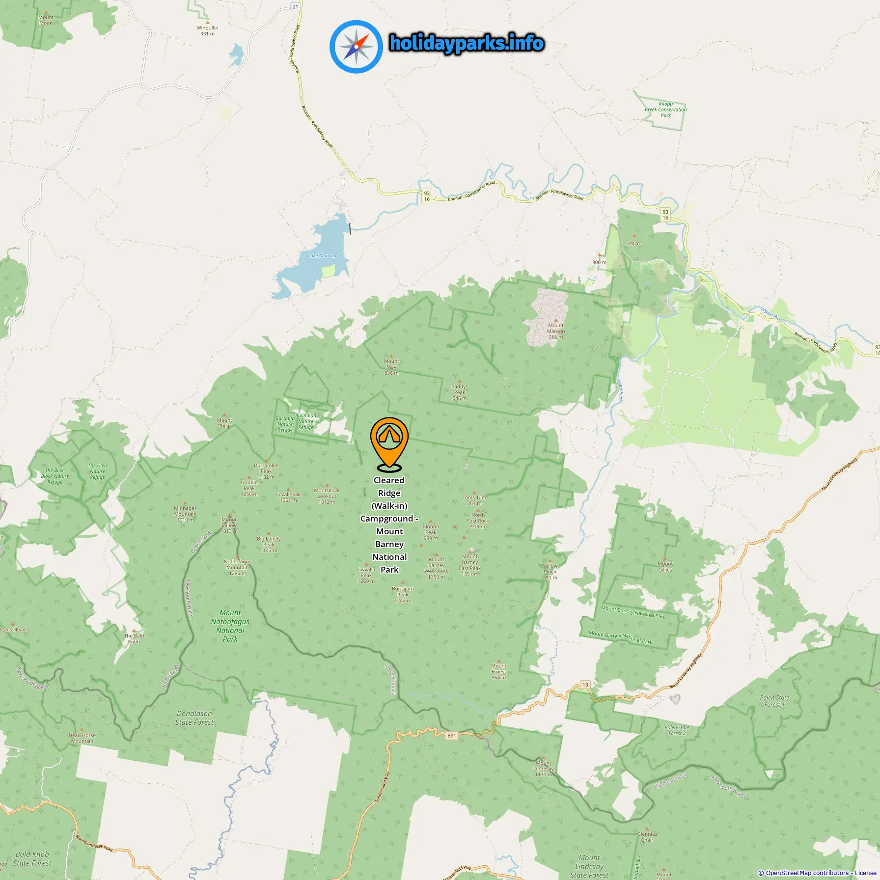 Localização de Cleared Ridge (Walk-in) Campground - Mount Barney National Park