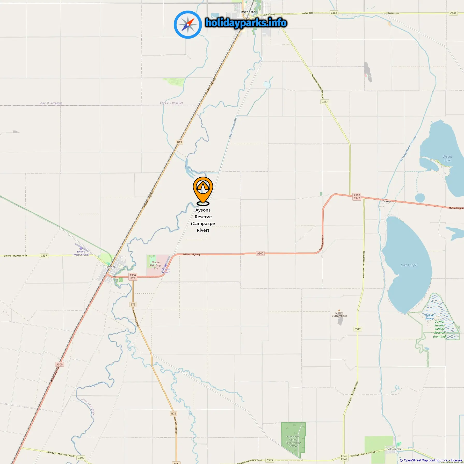 Localização de Aysons Reserve (Campaspe River)