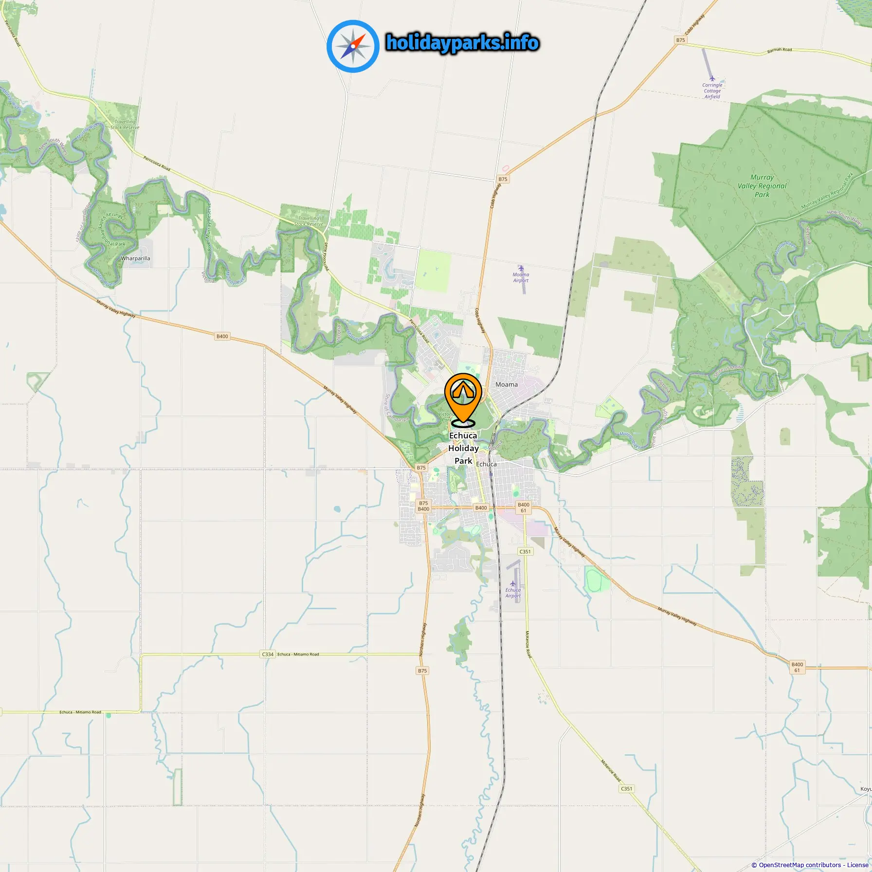Localização de Echuca Holiday Park