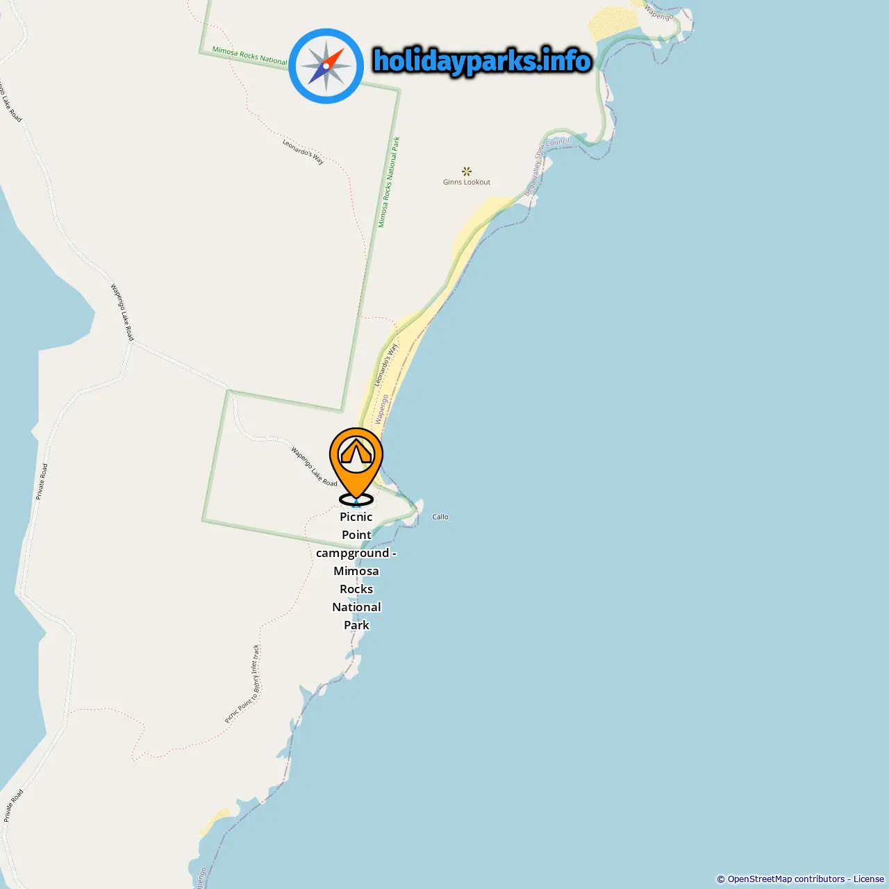 Localização de Picnic Point campground - Mimosa Rocks National Park