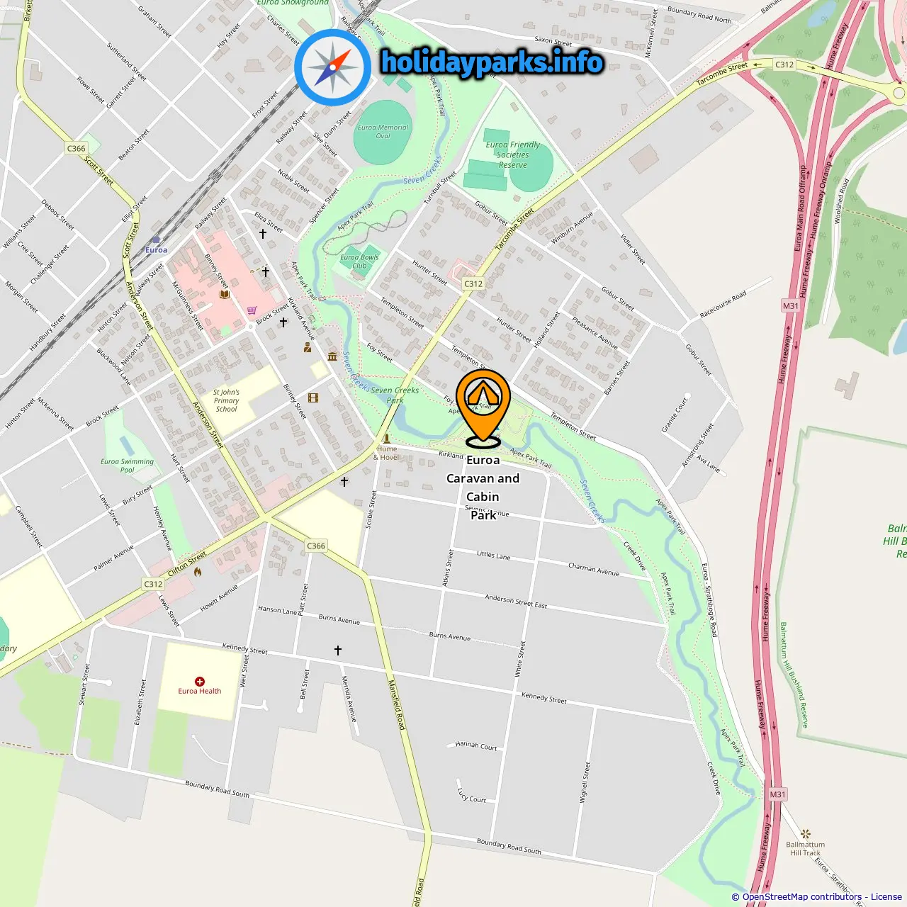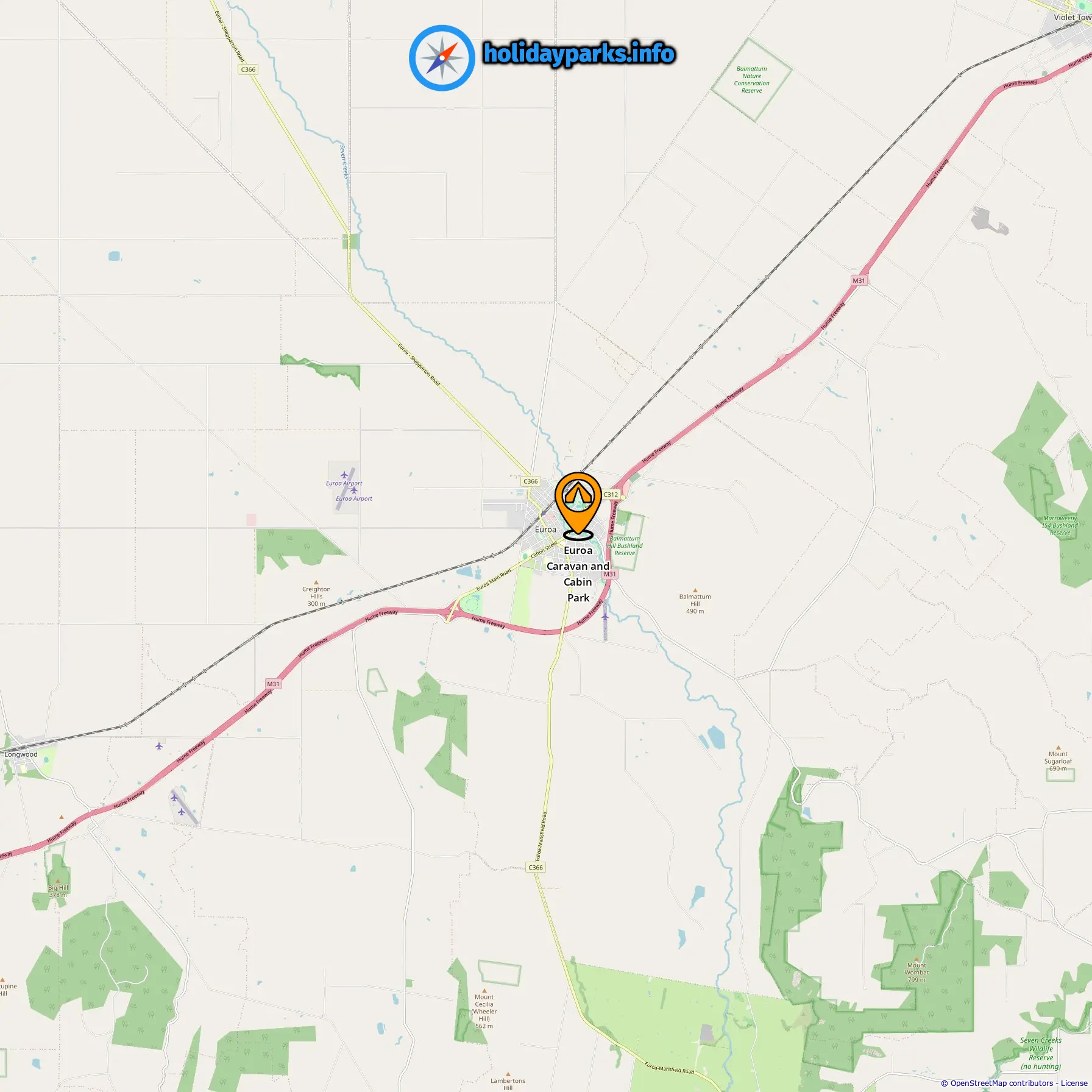 Distância do acampamento para Euroa: 0.5 mi